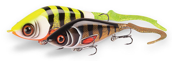 Un jerk lourd et silencieux de 120g armé d’une caudale souple, interchangeable de type Grub ou paddle.