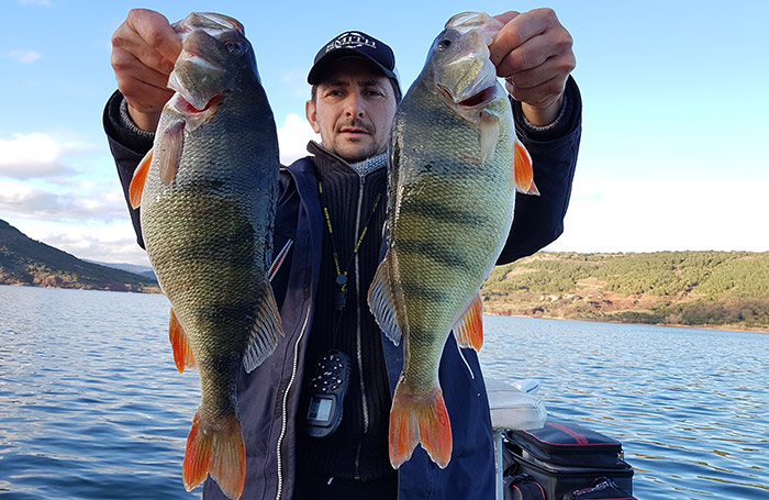 Vers 15h, plus une seule touche. Nous décidons de nous rapprocher du bord afin de pêcher moins profond. Je parviens à faire deux belles perches en linéaire, toujours avec un Piglet Shad raccourci.